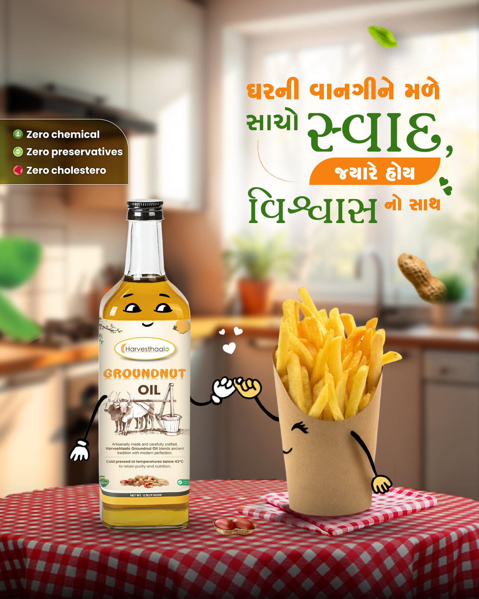 HarvestHaalo 15Ltr Groundnut Oil is a pure, plant-based oil crafted for commercial kitchens, food businesses, and large households that prioritize natural flavor and wellness. Cold-pressed from premium groundnuts, it supports heart health, improves digestion, and brings balanced nourishment to high-volume cooking.